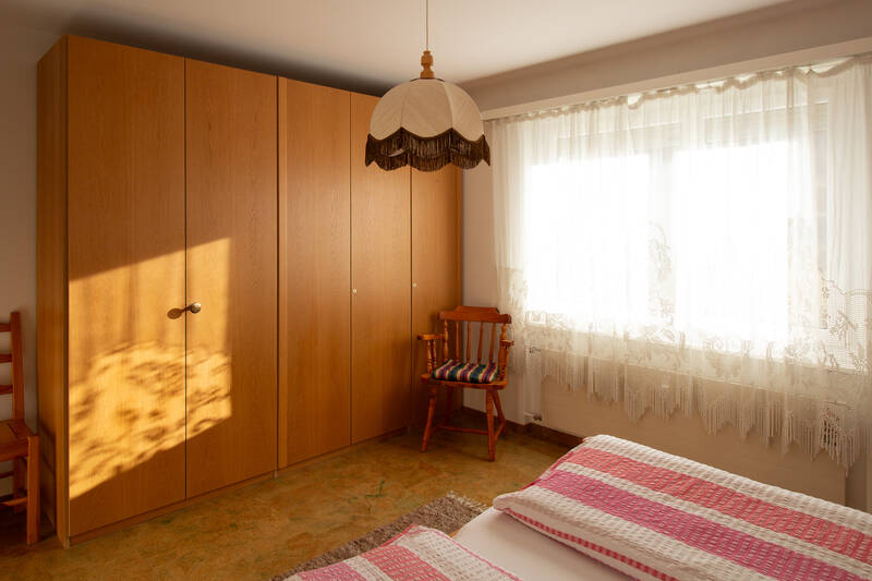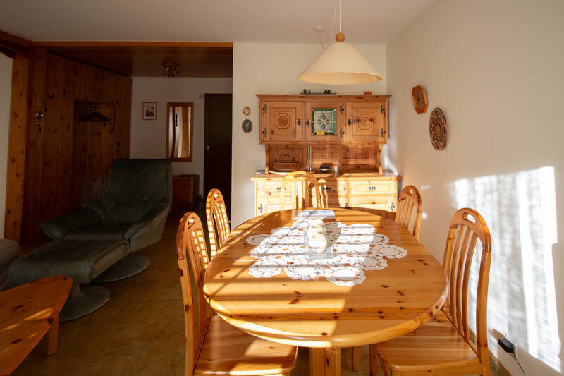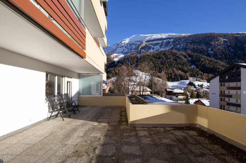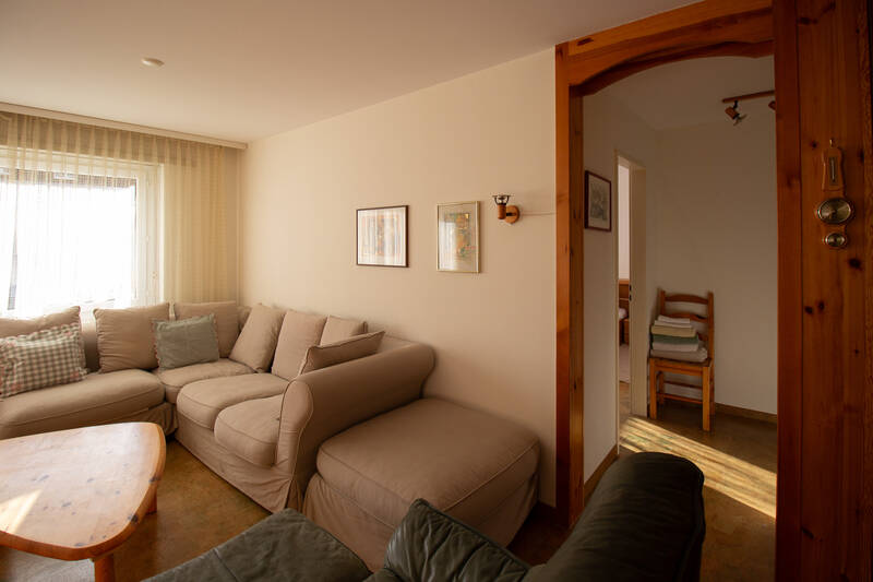 Gemütliche 3.5-Zimmerwohnung renoviert mit sehr grosser Terrasse süd und wunderschöner Aussicht, ca. 76m2, 1. Stock, möbliert, Eingang mit Garderobe, Küche erneuert mit Geschirrspüler und Glaskeramik-Kochfeld. Helles und geräumiges Wohnzimmer mit Essbereich und Sitzbereich mit Sofabett und Ausgang Südterrasse sehr gross, Schlafzimmer süd mit Doppelbett und Schrank, Schlafzimmer mit Hochbett und Sofabett, Badezimmer (Badewanne/Lavabo/WC), Kellerraum ca. 18m2 mit Fenster und Waschmaschine/Tumbler, Lift, gemeinsame Waschküche und Skiraum, Garage + CHF 30'000.00.