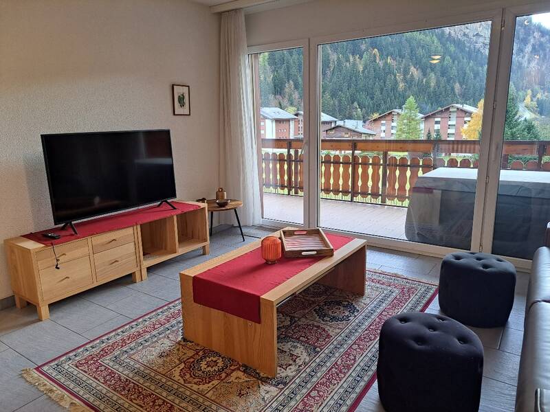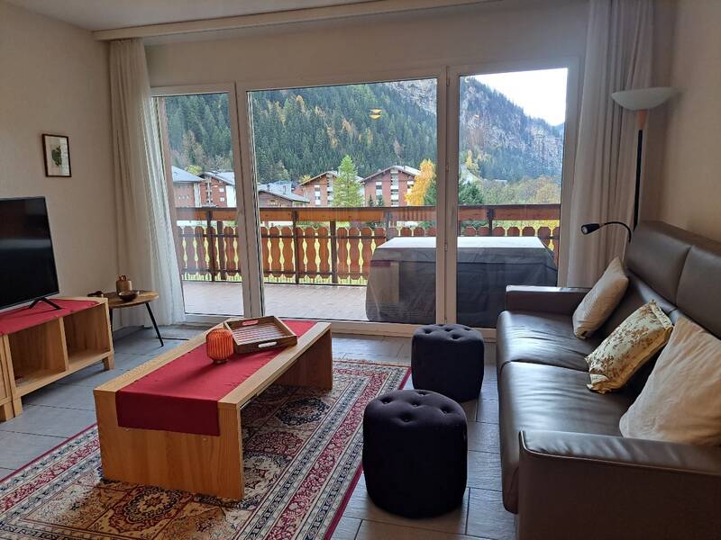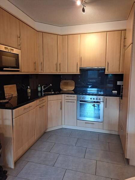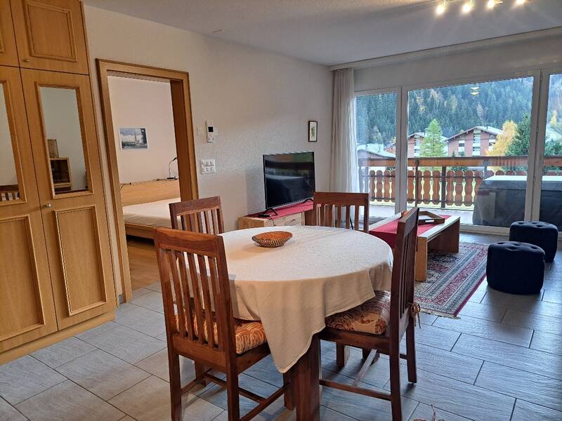 Spacieux et lumineux appartement de 2.5 pièces dans un endroit calme avec balcon sud-est, meublé, 1er étage, année de construction 2008, env. 50m2, entrée avec armoires, chaleureux grand salon-salle à manger avec sofa-lit, cuisine ouverte moderne avec lave-vaisselle et plaque vitrocéramique, chambre double avec salle de bain (douche/WC), toilette/lavabo séparée, sol en bois et carrelage, chauffage par sol, cave, local à skis, local à vélo, blanchisserie, connexion Wi-Fi, garage + CHF 30’000.00.